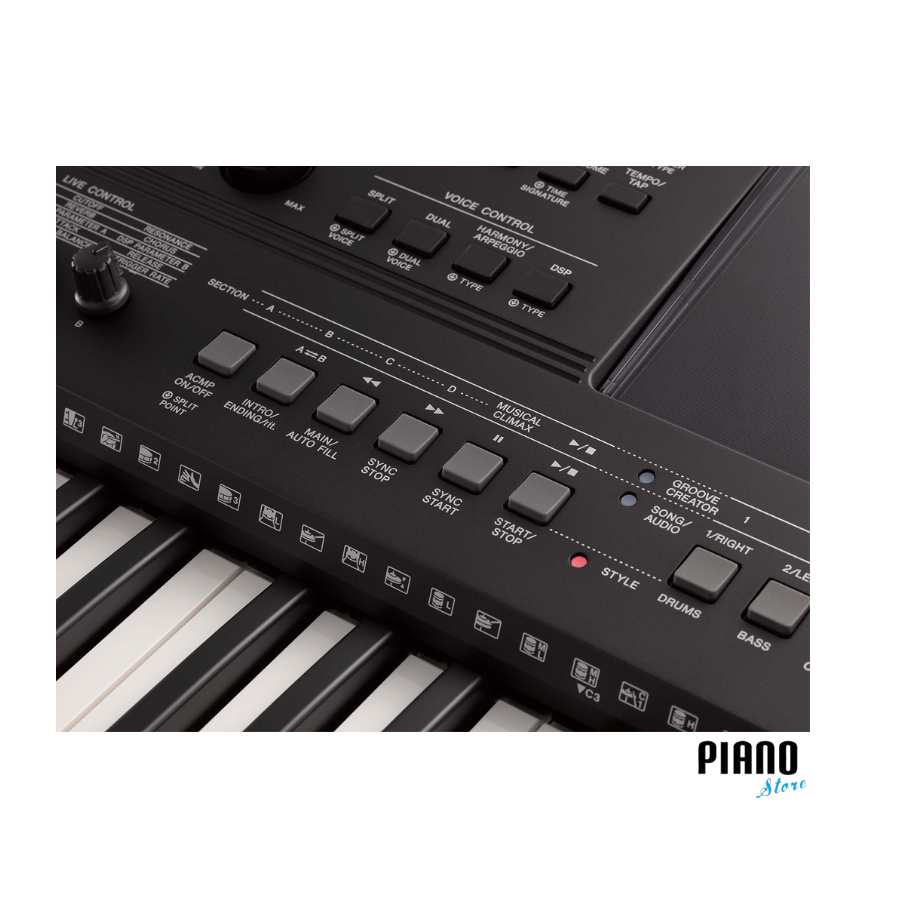 Các nút điều chỉnh cùng các phím bấm được bố trí ở những vị trí thích hợp, tiện lợi cho người chơi đàn.